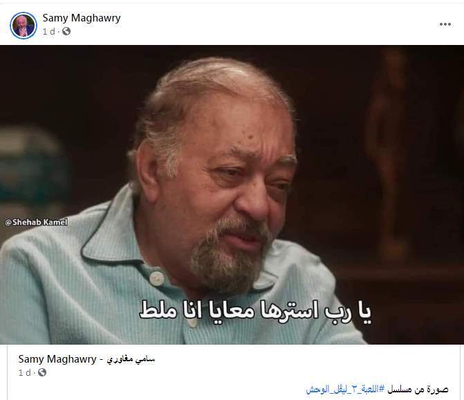 وكتب سامي مغاوري قائلا: "شكرا لكل الناس اللي كلمتني تطمن عليا بعد مانزلت الصورة ديه امبارح، ديه صورة من مسلسل #اللعبة_٢_ليڤل_الوحش وانتشرت على الفيسبوك وحبيت اشاركها معاكهم لأني عارف انكم بتحبوا #بسيوني_الملط بس في بعض الاصدقاء فهم الصورة غلط وافتكر اني منزلها لسبب شخصي عندي ، والحمد لله ربنا ساترها ياغاليين... شكرا لكل الاصدقاء والحبايب اللي اهتموا".