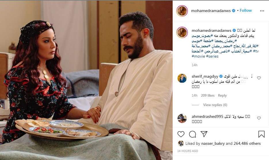 علق رمضان على الصورة قائلا: "لما الملبن يبقى قدامك والدكتور يمنعك منه "موسى" .. رمضان يجمعنا وثقة في الله نجاح".