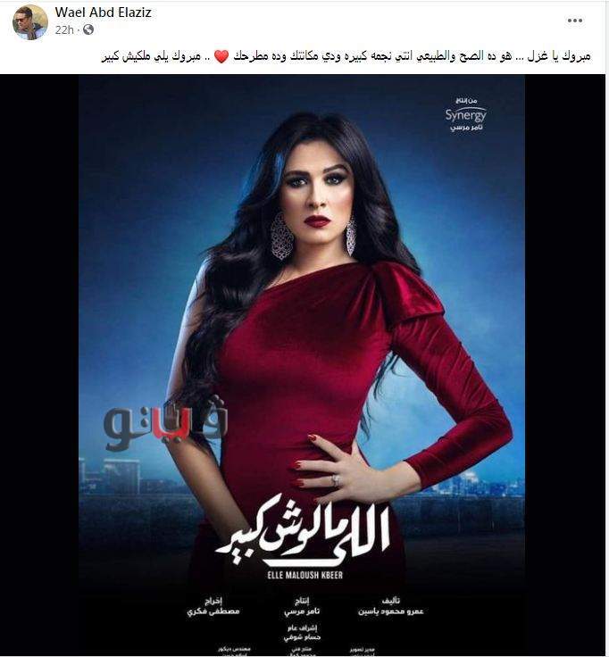 وكتب أحد المواقع أن الفنانة ياسمين عبدالعزيز تحذف زوجها أحمد العوضي من بوستر مسلسلها الجديد "اللي ملوش كبير"، وقام الفنان وائل عبدالعزيز بنشر الخبر عبر صفحته وكتب عليه "ما قولتلك يا حبيبي من الأول، ملهاش كبير، ما سمعتش كلامي".