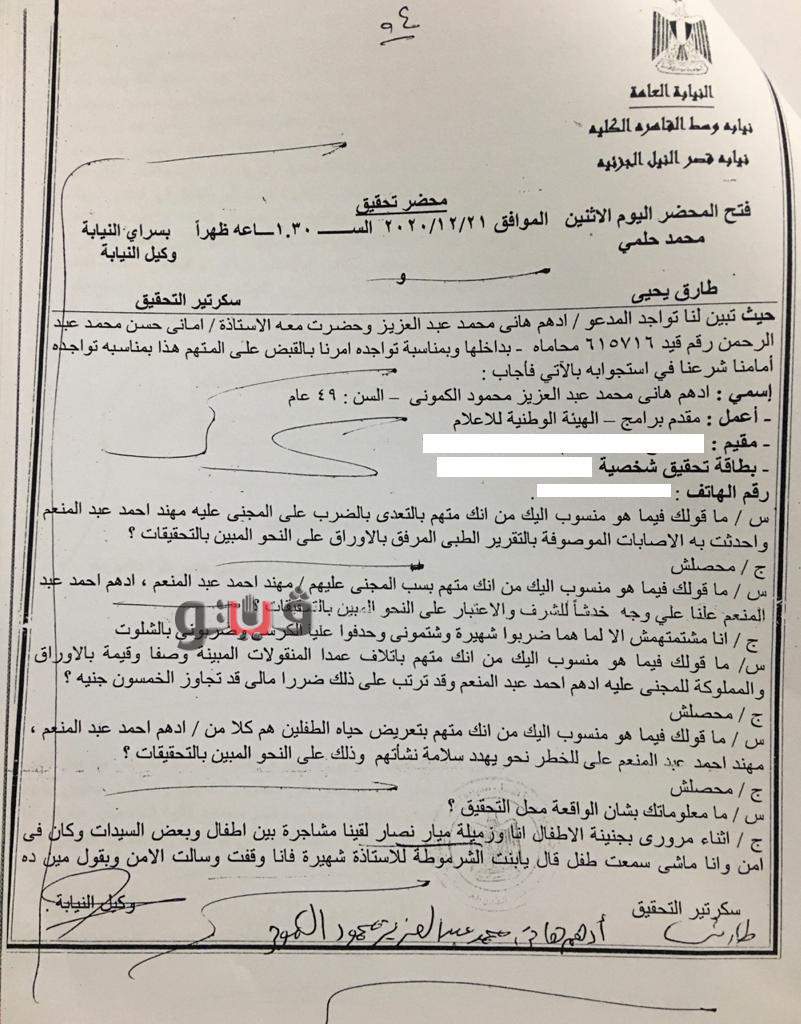 انتهت تحقيقات النيابة العامة في القضية رقم 444 جنح قصر النيل إلى إحالة مقدم برامج بالتليفزيون المصري للمحاكمة الجنائية بعد ثبوت اعتدائه عمدًا على طفلين شقيقين داخل نادي الجزيرة مما ترتب عليه وجود إصابات بهما، وأتلف هاتف أحدهما، ووجه إليهما ألفاظا تخدش الشرف والاعتبار.
