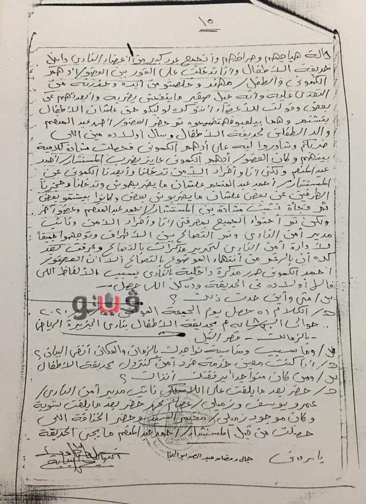 وأرفق بأوراق القضية تقرير المجلس القومي للطفولة والأمومة عن حالة الطفلين نتيجة الاعتداء عليهما، حيث تلقى خط نجدة الطفل بلاغًا بالواقعة، وتم عقد عدة جلسات مع الطفلين بغرفة المشورة النفسية لإعادة تأهليهما ومساعدتهما على تجاوز الحالة النفسية لواقعة الاعتداء عليهم وتحرر عن ذلك البلاغ رقم 10206 نجدة الطفل، موضح به دراسة حالة لكل طفل، وما تعرضا له من خطر على تنشئتهما وأخلاقهما ومصلحتهما وبيئتهما المحيطة، وشعورهما بالضيق والإحباط نتيجة الواقعة.