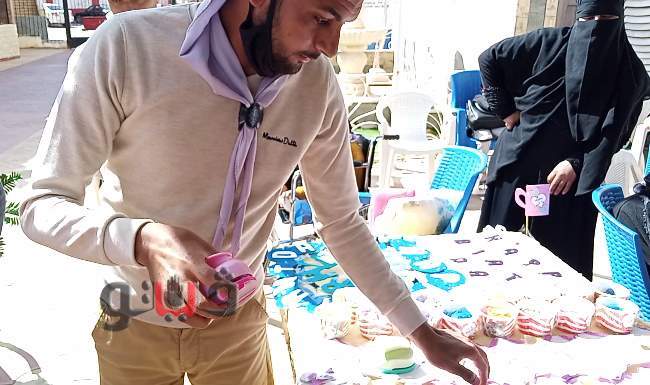 وعلى هامش المعرض التاسع لعرض وبيع منتجات الشباب أصحاب المنتجات الصغيرة والحرف اليدوية الذي تنظمه الإدارة العامة للسياحة والمصايف بالنادي الاجتماعي بمطروح، يقف مجموعة من شباب وأطفال ذوي الإعاقة يعرضون منتجاتهم برفقة أولياء أمورهم.