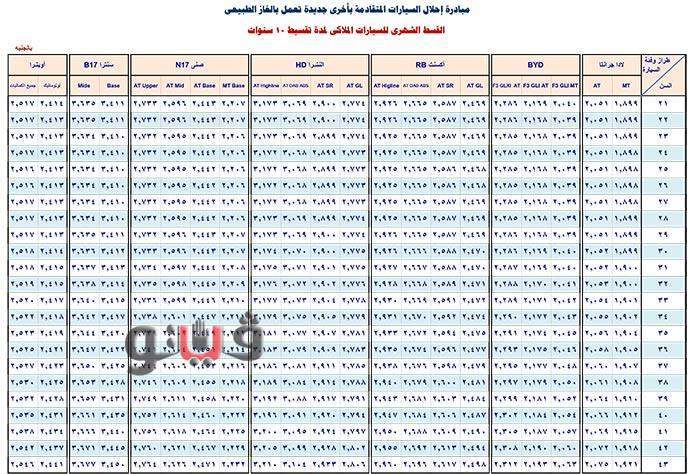 إعلان عن قيمة أقساط السيارات الملاكي داخل الإحلال حسب السن