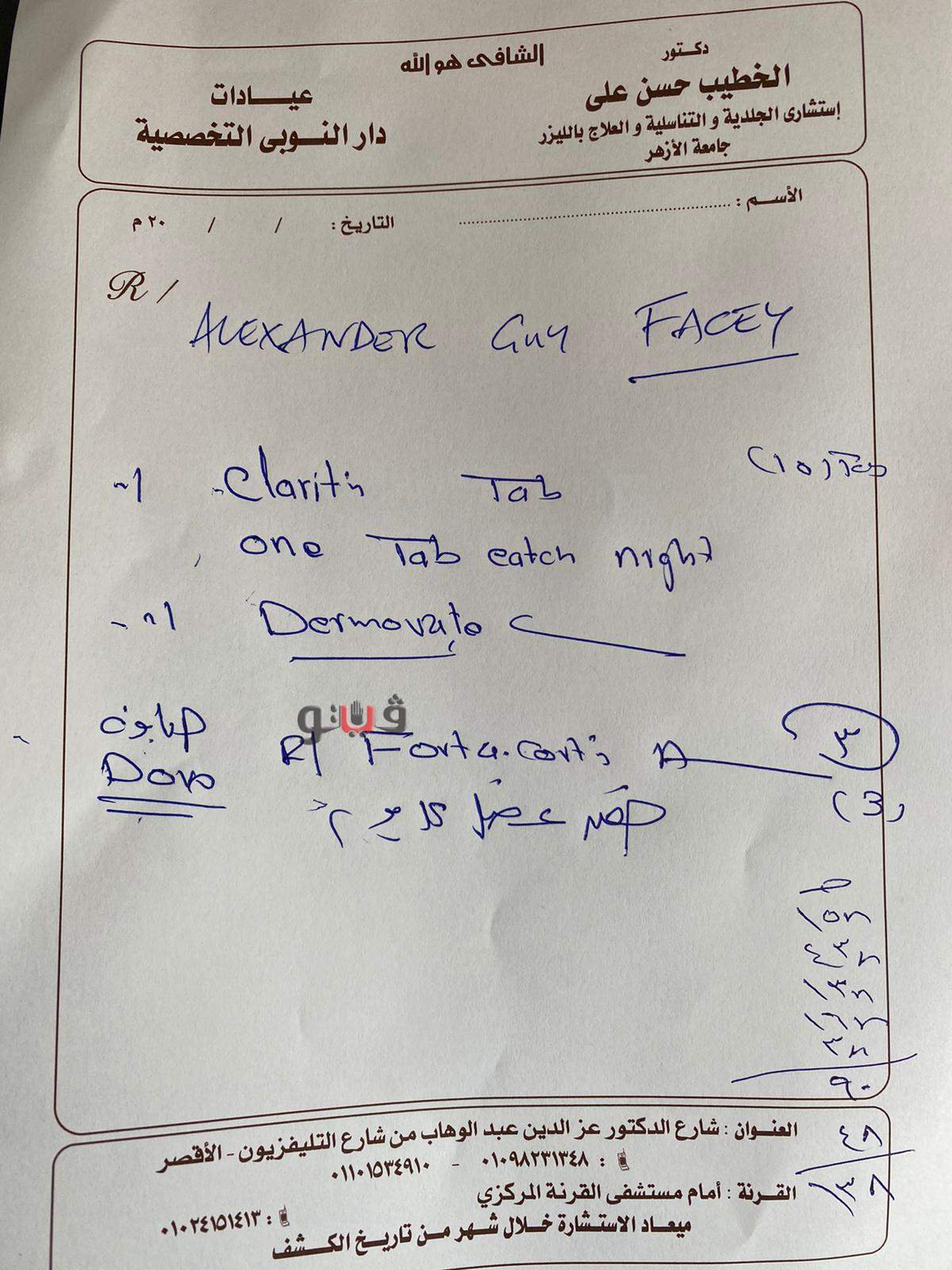 فتوجهوا إلى منزل أحد الأطباء وهو الدكتور الخطيب حسن علي، استشاري الأمراض الجلدية والتناسلية بكلية طب الأزهر، لعلاج الحالة.