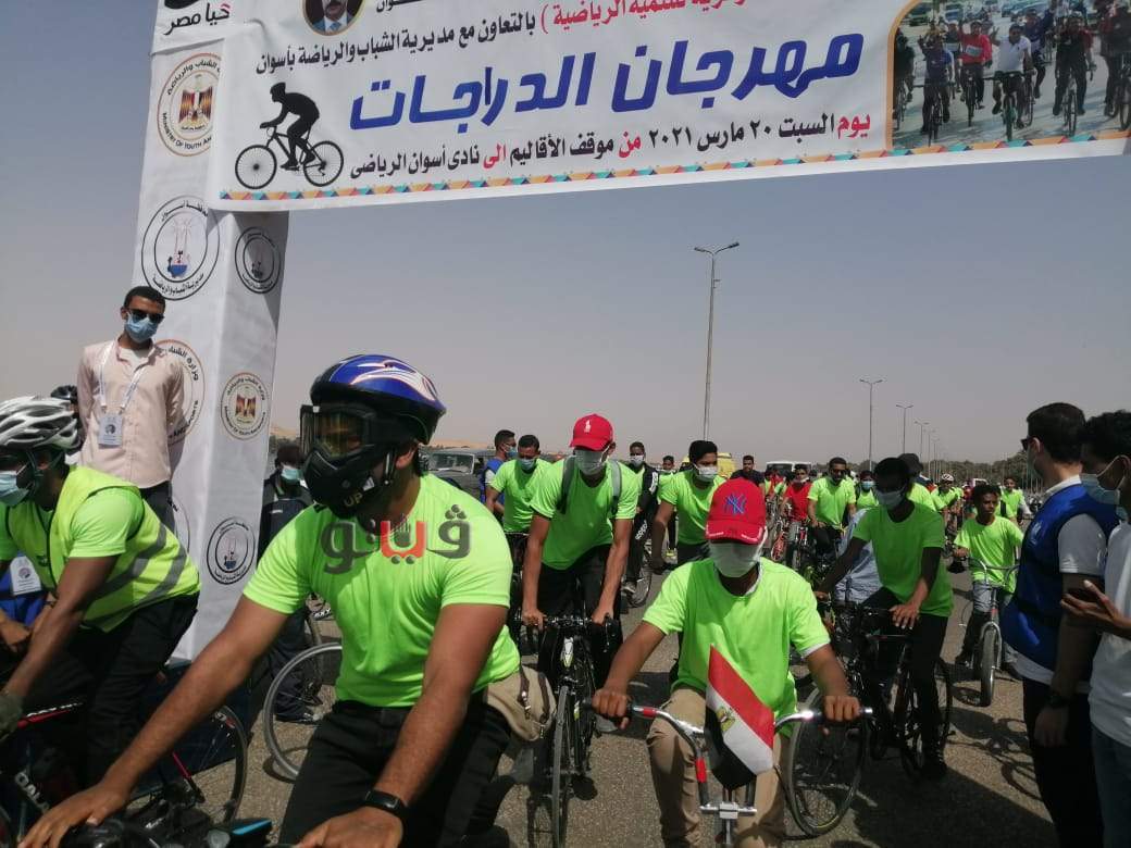 أجرى الدكتور أشرف صبحى وزير الشباب والرياضة جولة ميدانية يرافقع اللواء أشرف عطية محافظ أسوان والتي استهلها بإطلاق إشارة البدء لمهرجان الدراجات بمشاركة 200 شاب وفتاة بدءاً من المسجد الجامع وحتى ميدان نادى أسوان الرياضي.
