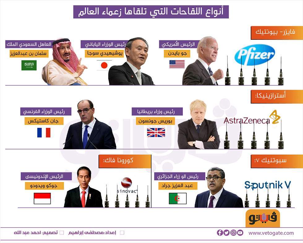 أنواع اللقاحات التي تلقاها زعماء العالم| إنفوجراف