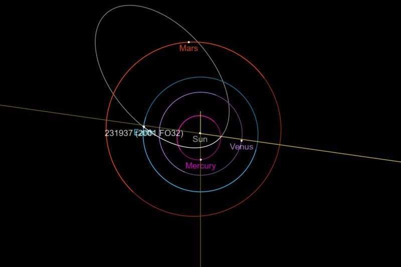وقالت إدارة الطيران والفضاء الأمريكية "ناسا"، إن قطر الكويكب، وهو صخرة عملاقة، يطلق عليها باحثون "2001 - FO 32"، يبلغ عدة مئات من الأمتار، وسيقترب من الأرض على مسافة حوالي مليوني كيلومتر. وتلك المسافة أكبر 5 مرات من المسافة بين كوكب الأرض والقمر.