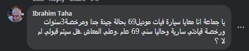 وتساءل إبراهيم طه قائلا: "يا جماعة أنا معايا سيارة فيات موديل 1969 بحالة جيدة جدا والرخصة سارية 3 سنوات ورخصة قيادتي سارية وحاليا سني 69 عام وعلى المعاش هل سيتم قبولي أم لا ؟".