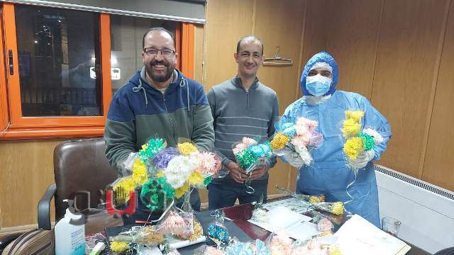 "أنتم فى القلب مش العزل".. باقات ورود من أطباء التأمين الصحي لتهنئة مصابات كورونا بـ"عيد الأم" ببنى سويف | صور