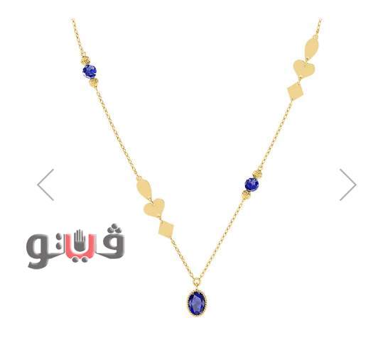 سلسال القلوب من الذهب الأصفر والأحجار الزرقاء بسعر 3300 جنيه.