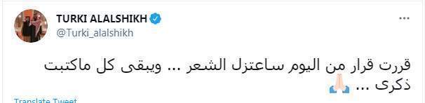 وكتب تركي آل الشيخ تغريدة على تويتر قال فيها: "قررت قرار من اليوم سأعتزل الشعر... ويبقى كل ماكتبت ذكرى...".