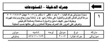 تبدأ جلسة المزاد ظهراً وثمن كراسة الشروط 400 جنيه شاملة الدمغات وضريبة القيمة المضافة، وتشمل سيارات مزاد جمرك الدخيلة :