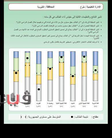 اللون الرمادي: راسب أي لم يحصل الطالب على 50% في المادة.