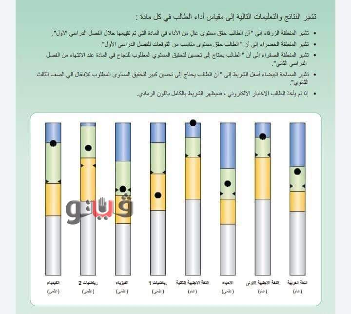 اللون الأزرق: يعني حصول الطالب على تقدير امتياز