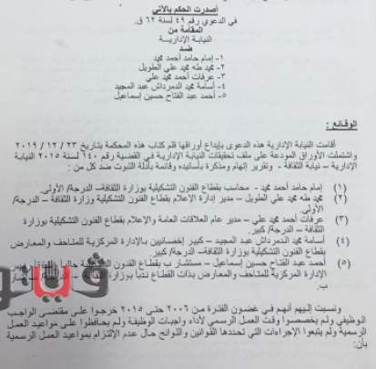 بالأسماء.. مجازاة مستشار ومسؤولين بـ «الفنون التشكيلية» وبراءة مديرين