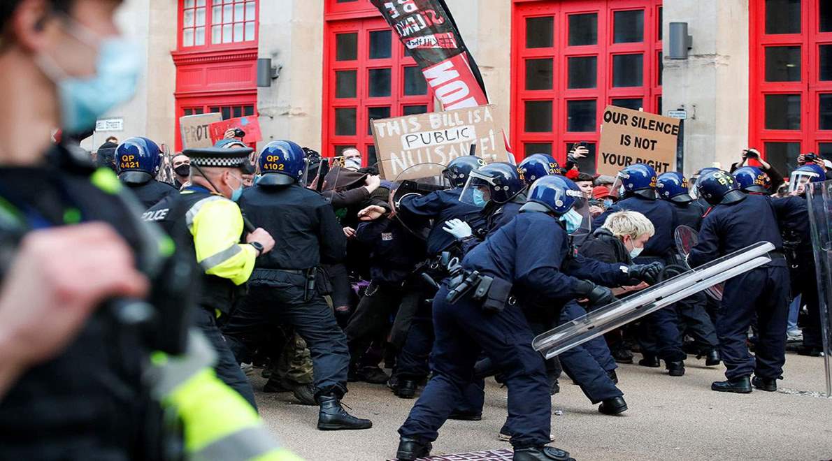 واحتشد آلاف المتظاهرين أمس الأحد في وسط المدينة، متجاهلين قيود كوفيد -19، للاحتجاج على مشروع قانون حكومي في البرلمان يمنح الشرطة سلطات جديدة لفرض قيود على الاحتجاجات في الشوارع.