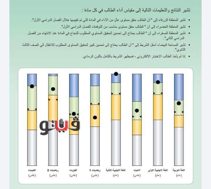 اللون الأزرق: يعني حصول الطالب على تقدير امتياز