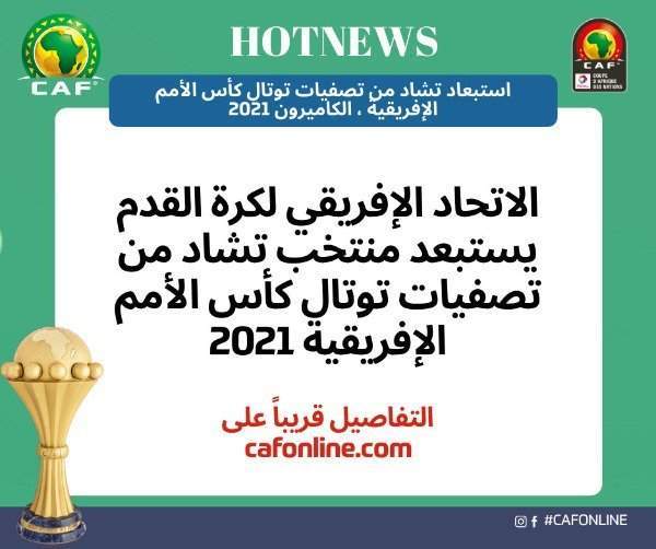 وذكر حساب الكاف عبر موقع التواصل الاجتماعي " تويتر" أن منتخب تشاد تم استبعاده ولن يستكمل منافسات التصفيات القارية، دون إعلان الأسباب التي دفعته لاتخاذ القرار.