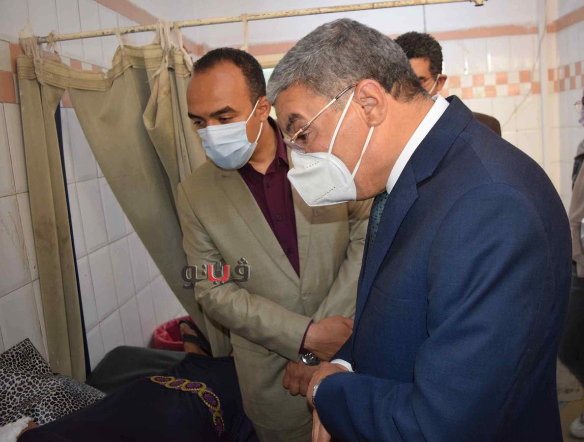 محافظ المنيا يطمئن على 37 عاملا أصيبوا باختناق العاصفة