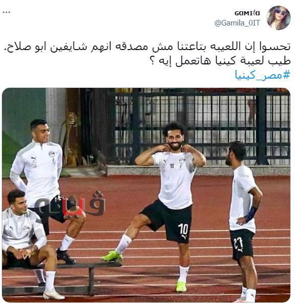 ونشرت "جميلة" صورة لمحمد صلاح معلقة عليها: "تحسوا إن اللعيبه بتاعتنا مش مصدقه انهم شايفين ابو صلاح.. طيب لعيبة كينيا هاتعمل إيه؟"