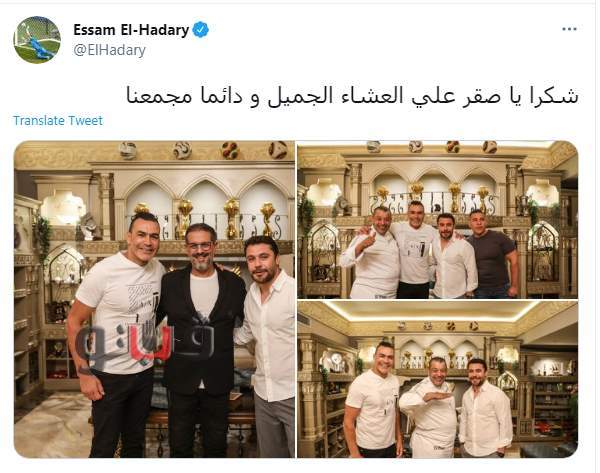 وكتب عصام الحضري تغريدة على تويتر "شكرا يا صقر على العشاء الجميل و دائما مجمعنا".