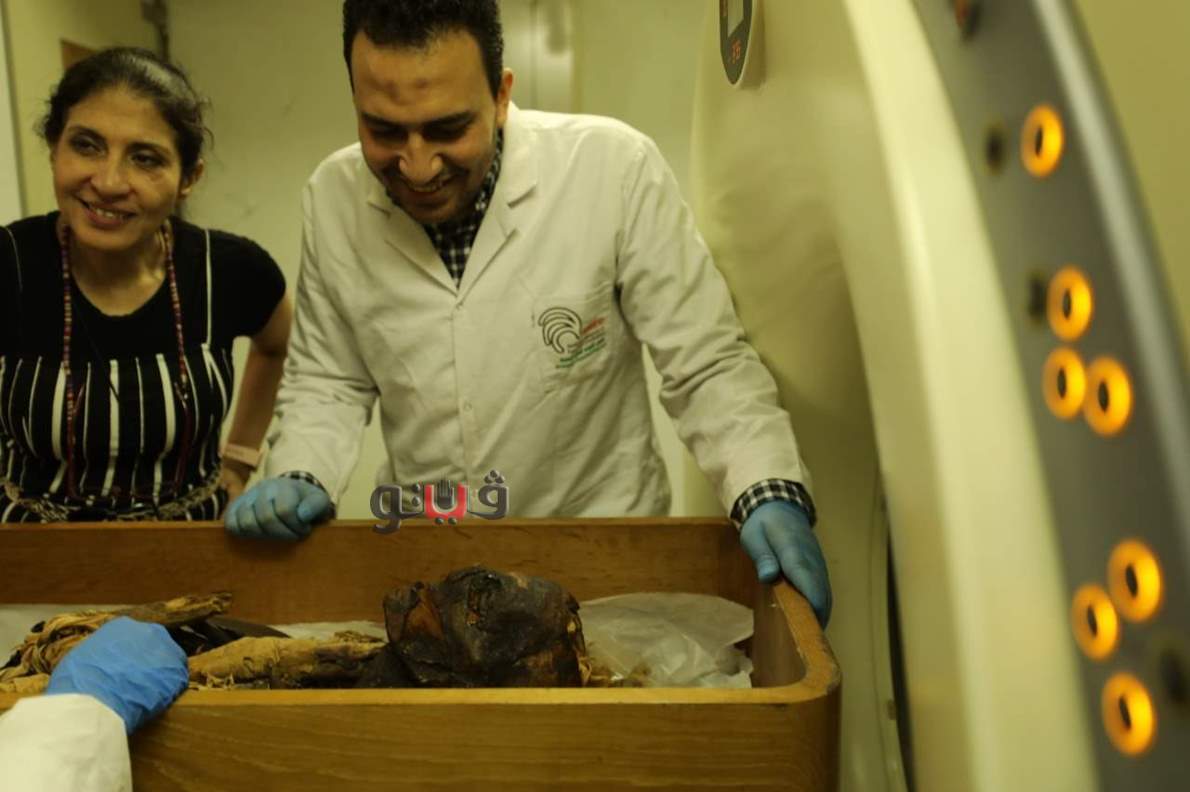 كما تم دراسة المرحلة التاريخية لهذه المومياوات بعد اكتشافها وخصوصا أن هذه المومياوات وتوابيتها تم نقلها أكثر من مرة الأولى من الأقصر إلى متحف بولاق ثم قصر المنيل ثم المتحف المصري ثم متحف سعد زغلول ثم العودة للمتحف المصري مرة أخرى، بالإضافة إلى ترددها داخل المتحف بين قاعات العرض والمخازن، وكلها بأساليب تقليدية، مما عرضها للضمور والكسور وجعل حالتها في حاجة للعناية الشديدة في التعامل معها وإعداد خطة خاصة لنقلها، بعد جمع البيانات الأثرية لكل ملك التي حصلت عليها من نائب المدير التنفيذي للمتحف القومي للحضارة المصرية " إيناس جعفر" تم تحليل هذه البيانات، وبدأت العمل في مهمتي منذ عام 2017، لمدة عام كامل بمفردي حتى انضمت لي الدكتورة ولاء صلاح والدكتورة إيمان إبراهيم أخصائي الترميم، لمساعدتي في المهمة، واستغرقنا نحو عام وثماني أشهر للمعاينة الكاملة للمومياوات وإعداد الخطة وتوفير المواد والخامات المناسبة لكل مومياء "ودي أصعب فترة في المهمة كلها"، ووضع المومياوات تحت الاختبار واختيار الأساليب المناسبة للتعامل مع حالة كل مومياء، وإجراء الدراسات الخاصة لحركة المومياوات وكيفية إخراج المومياوات من الفاترينة الخاصة بها للبيئة العادية حتى لا تتعرض لصدمة بيئية، بالإضافة لمرحلة التعقيم وهي مرحلة هامة وفي غاية الحساسية، وأيضًاإخضاع المومياوات لعملية C.T.scan بواسطة الدكتورة سحر سليم أستاذ ورئيس قسم الأشعة بكلية الطب جامعة القاهرة والتي لها باع في مجال الفحص بالاشعة المقطعية للمومياوات الفرعونية، وهي التي تكشف عن تركيب ومكونات المومياوات من طبقة راتنجية وجلد والعظام والحشو الداخلي بالفراغ الصدري والبطني والجمجمة.