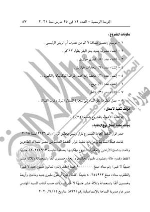 نشرت الجريدة الرسمية في عددها رقم 12، الصادر في 25 مارس 2021، قرار رئيس مجلس الوزراء الدكتور مصطفى مدبولي رقم 325 لسنة 2021، باعتبار مشروع إنشاء المسار الخاص بنقل (5 ملايين متر مكعب في اليوم) من مياه مصرف بحر البقر إلى شرق قناة السويس محافظة بورسعيد، من أعمال المنفعة العامة.