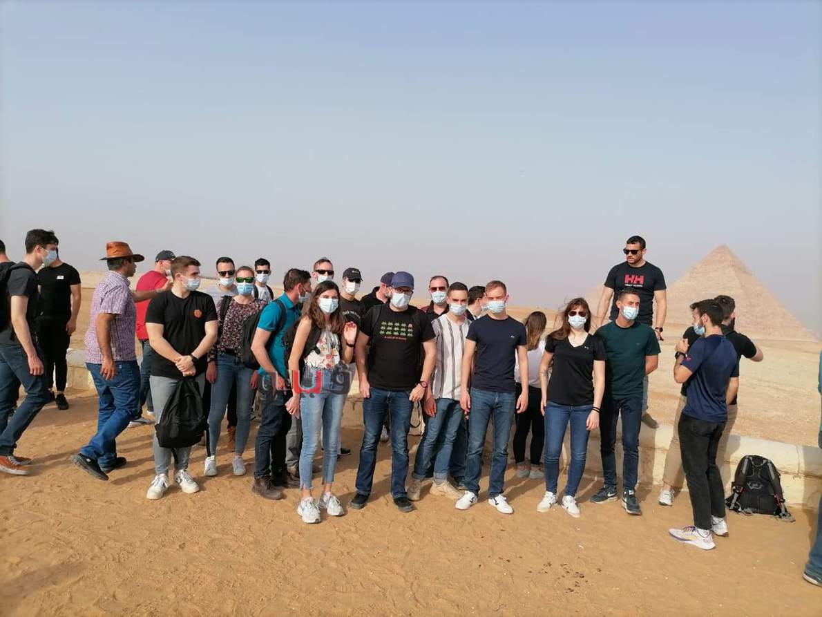وتجول أعضاء الطاقم داخل منطقة أهرامات الجيزة، حيث زاروا الهرم الأكبر ومنطقة البانوراما ومنطقة تمثال أبو الهول، كما التقطوا عدد من الصور التذكارية، معربين عن سعادتهم بهذه الزيارة التي استمتعوا خلالها بمشاهدة أحد أهم معالم الحضارة المصرية العريقة، والهرم الأكبر العجيبة الوحيدة الباقية من عجائب الدنيا للعالم القديم.