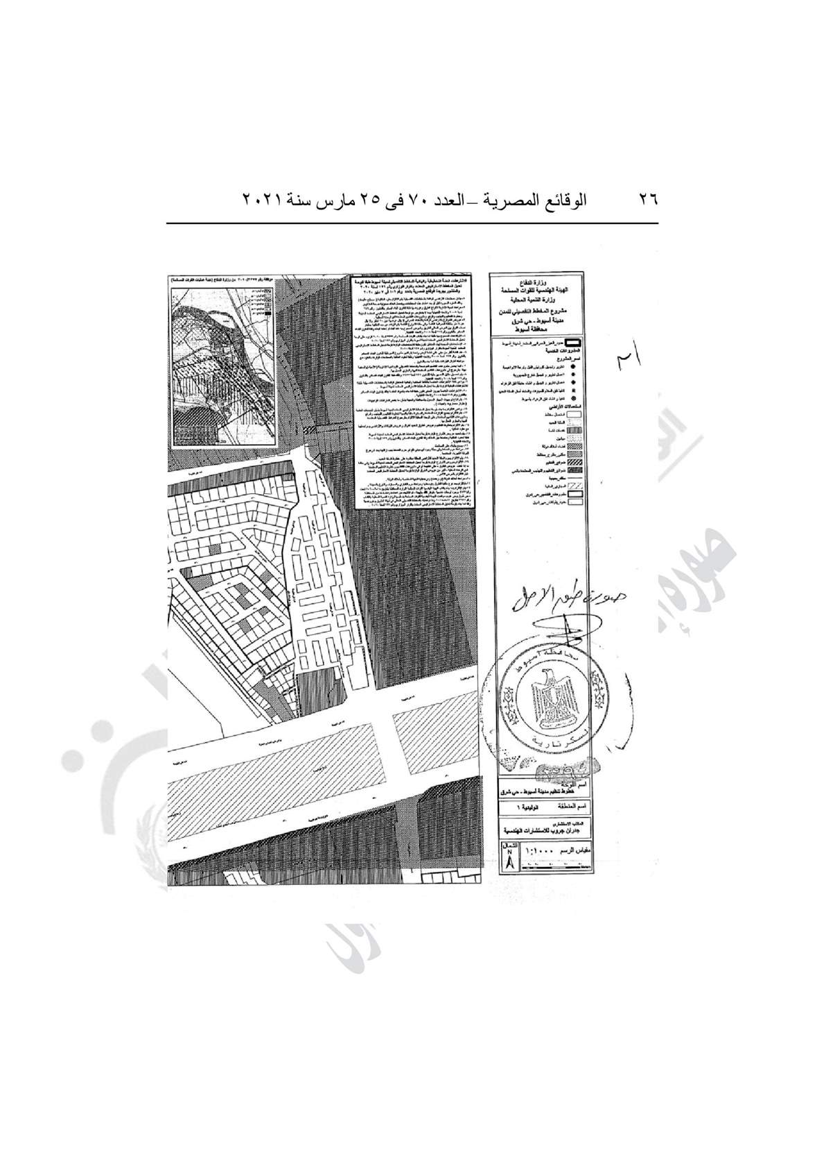 نشرت جريدة الوقائع المصرية في عددها رقم 70، الصادر في 25 مارس 2021، قرار محافظة أسيوط رقم 328 لسنة 2021، باعتماد المخطط التفصيلي لمدينة أسيوط.