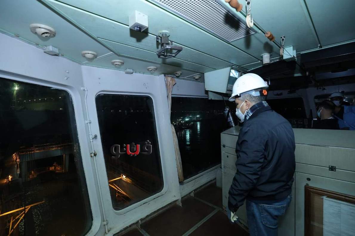 و خلال جولته التفقدية، اطلع الفريق أسامة ربيع على أعمال التكريك التي تتم بواسطة الكراكة مشهور بداية من مساء الخميس، بالتنسيق مع شركة الإنقاذ الهولندية SMIT والتي تتابع جهود التعويم من أعلى سفينة الحاويات البنمية.