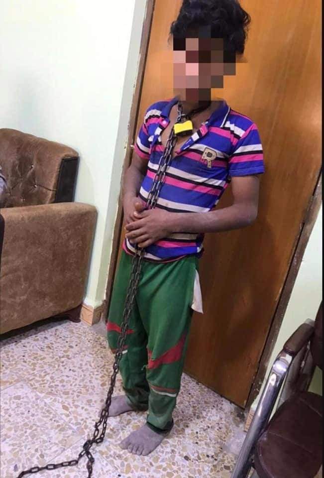 إنقاذ طفل سجنه والده وقيده بالسلاسل لمدة 6 أعوام في العراق | صور