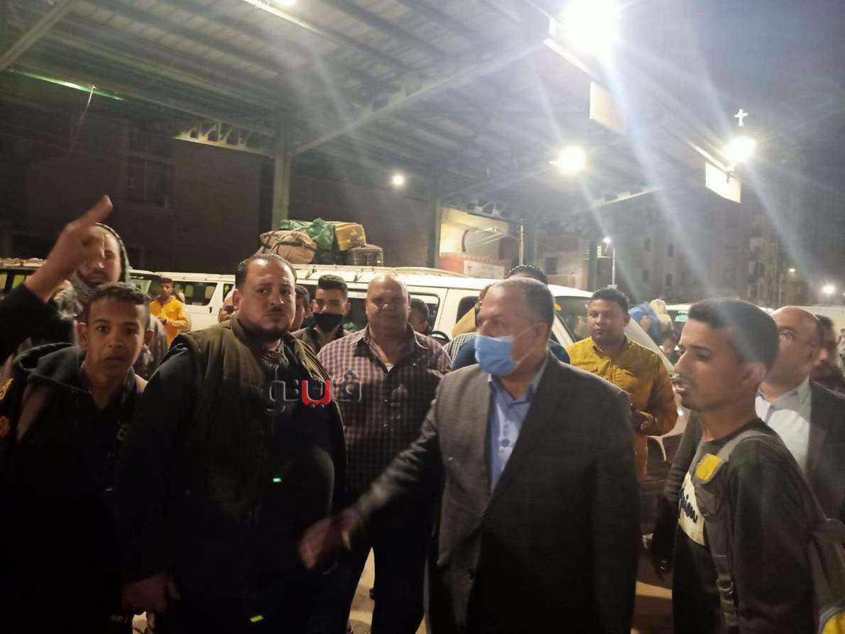 كما تفقد موقف سيارات الأجرة للمحافظات الكائن بمنطقة المعلمين يرافقه مسئولي المواقف ومباحث المرور للاطمئنان على انتظام حركة النقل نظرا لتوقف حركة القطارت للوجه القبلي والدفع بسيارات واتوبيسات للطوارئ في حال وجود زحام على المواقف.