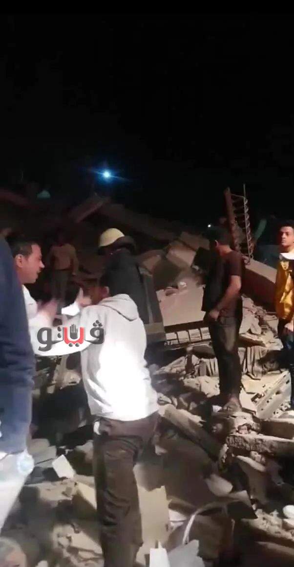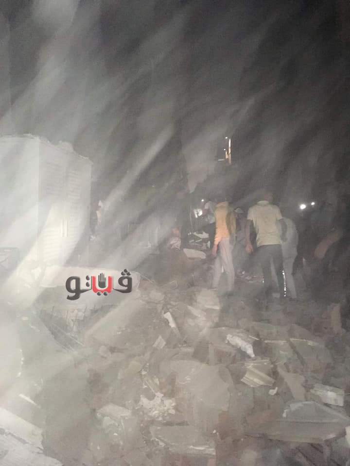 وتم انتشال جثث 5 أشخاص ولقوا مصرعهم فيما إصيب 23 وتواصل أعمال البحث عن آخرين تحت الأنقاض.
