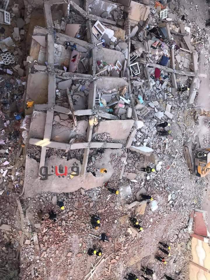 وثقت مجموعة من الصور آثار انهيار عقار جسر السويس والجهود المبذولة لبحث عن المفقودين فى العقار المنكوب.