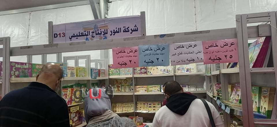 كما شهد المعرض تخفيضات على كتب الأطفال التعليمية، وجاءت لافتة أخرى تحمل عبارات "عرض خاص 6 كتب تلوين + علبة ألوان هدية بـ 25 جنيها.. أحلى الحكايات قطع كبير بـ 10 بدلاً من 25 جنيه.. مجلد حكايات فرنسي وانجليزي ب20 جنيه"، بهذه اللافتات عرضت شركة النور للانتاج التعليمي، إصداراتها والتي تهدف جذب عدد كبير من الأطفال، وشهد إقبال أولياء الأمور عليها.
