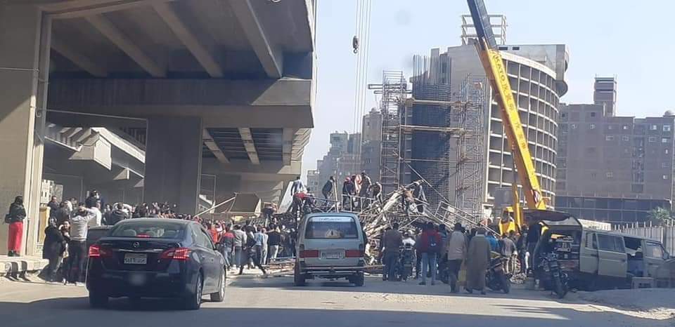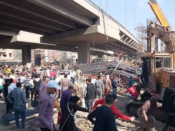تداول نشطاء مواقع التواصل الاجتماعي "فيس بوك وتويتر" مقاطع فيديو وصور لانهيار العمود الخرساني، تحت الإنشاء، لكوبري ترسا.