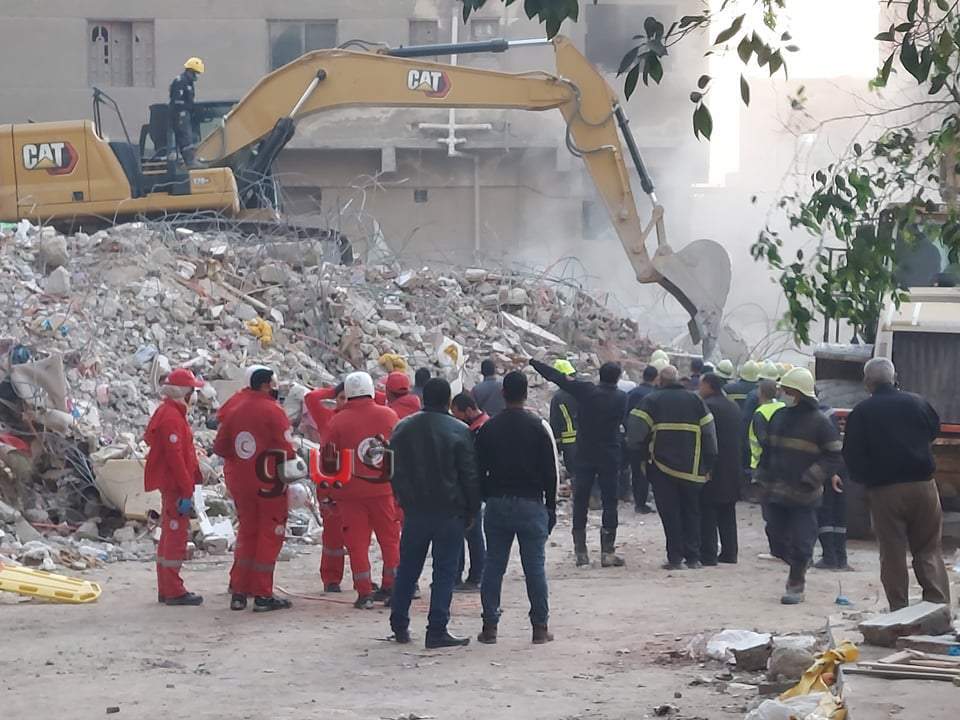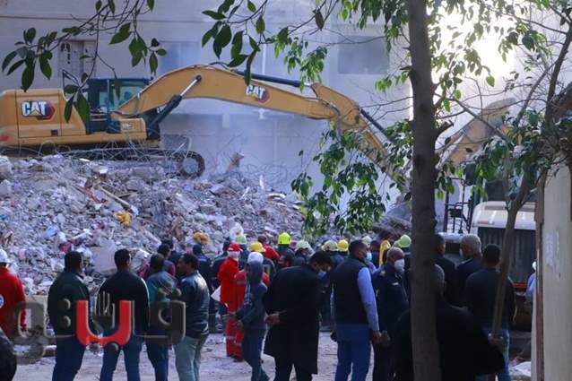 وتكثف قوات الإنقاذ بالحماية المدنية بالقاهرة جهودها في عمليات البحث ورفع الأنقاض بعد الاستعانة بلوادر وأوناش لرفع ركام العقار، فيما تنقل سيارات الإسعاف لنقل أي أشخاص يتم انتشالها.