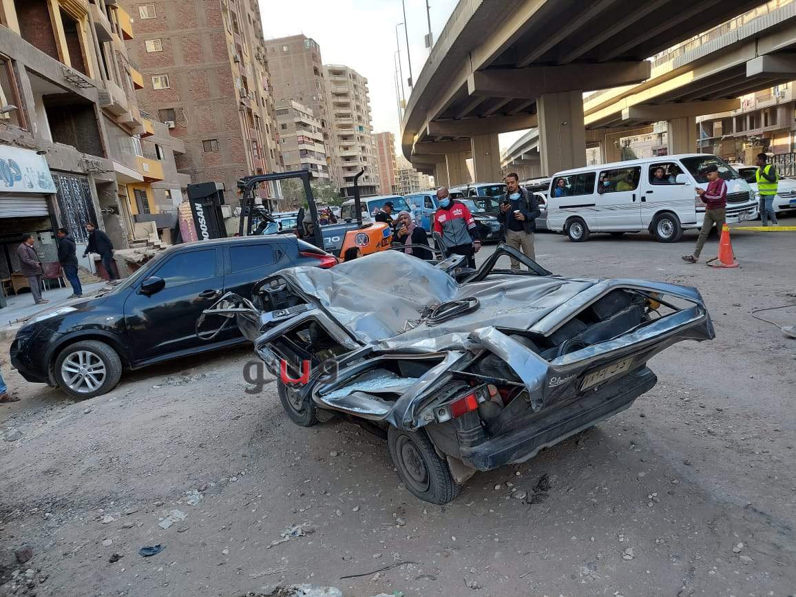 تمكنت قوات الإنقاذ من إخراج سيارة أجرة سقط عليها عمود كوبري ترسا، حيث تحطمت بالكامل في موقع كوبري تحت الإنشاء بمنطقة المريوطية.