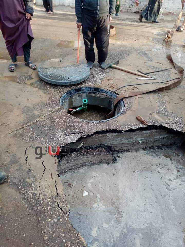 تسبب محبس مياه بخط القرينين التابعة لمركز الباجور في محافظة المنوفية إحداث هبوط أرضي بجوار الغرفة المتواجد بها المحبس مما تسبب خروج المياه وتعطيل حركة السير.