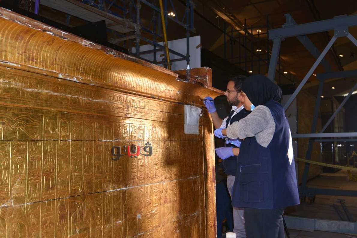 وحرص الأمين العام للمجلس الأعلى للآثار على تفقد أعمال ترميم وتثبيت المقصورة الصغرى للملك توت عنخ آمون داخل الفاترينة الخاصة بها والتي استقبلها المتحف المصري الكبير خلال الشهر الجاري من المتحف المصري بالتحرير، حيث شهدا أعمال تنظيف المقصورة وتقوية الأماكن الضعيفة منها.