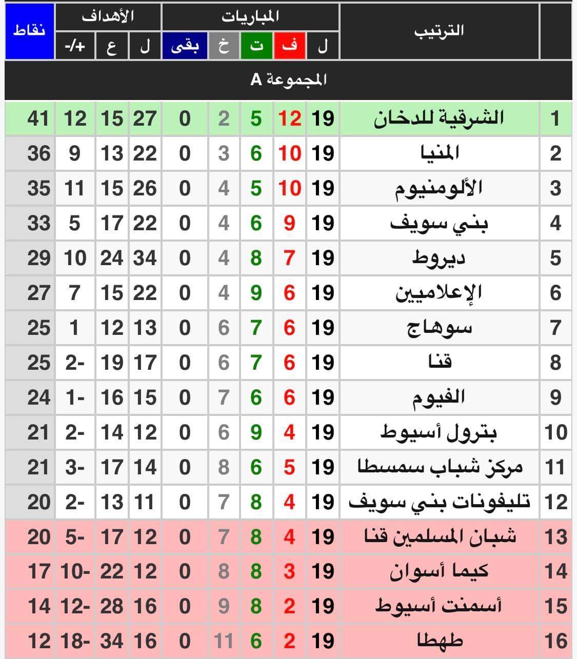 جدول ترتيب دوري القسم الثاني بمجموعة الصعيد عقب الجولة الـ 19