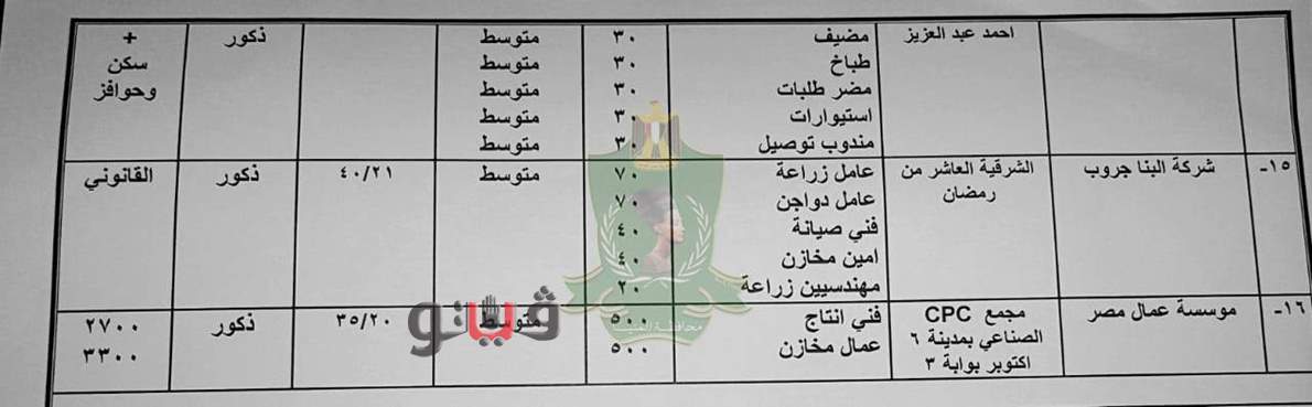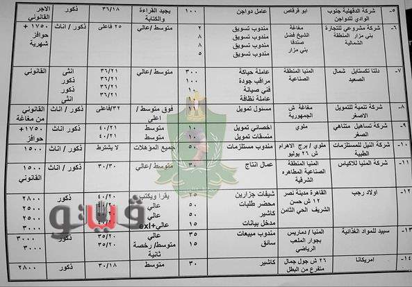 تنشر "فيتو" أسماء الشركات وكيفية التواصل معها، ونوع العمل والمكافات الشهرية التى يحصل على الشاب والموهلات العلمية المطلوبة وعدد فرص العمل المتوفرة.
