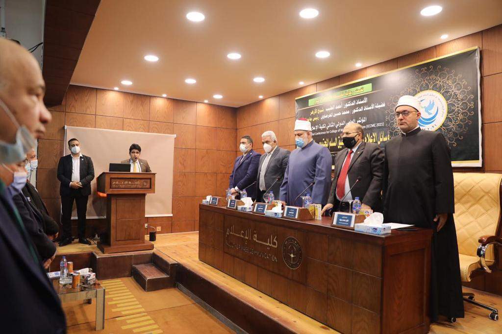 وكان الدكتور محمد الضويني، وكيل الأزهر، قد افتتح أمس السبت مؤتمر كلية الإعلام وقال خلال كلمته: "إن تنظيم كلية الإعلام لمؤتمرها الدولي الثاني بعنوان: "وسائل الإعلام ودورها في تحقيق السلم المجتمعي والأخوة الإنسانية" دليل على أن الكلية متفاعلة ومواكبة لما يجري في الساحة من حراك اجتماعي وإعلامي وديني، متوقعا أن يحمل هذا المؤتمر كثيرا من المضامين والمفاهيم التي تحتاجها الأمة، خاصة في ظل ما تشهده الساحة الإعلامية من تحديات تهدد الاستقرار وتشيع الفوضى، ناقلا في الوقت ذاته تحيات فضيلة الإمام الأكبر دكتور أحمد الطيب شيخ الأزهر، لكل القائمين على تنظيم المؤتمر وجميع الباحثين المشاركين فيه، وتمنياته بأن يحقق هذا المؤتمر أهدافه المنشودة.
