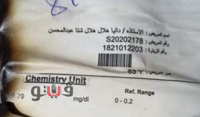 العثور على ورقة مدون بها اسم مريضة.