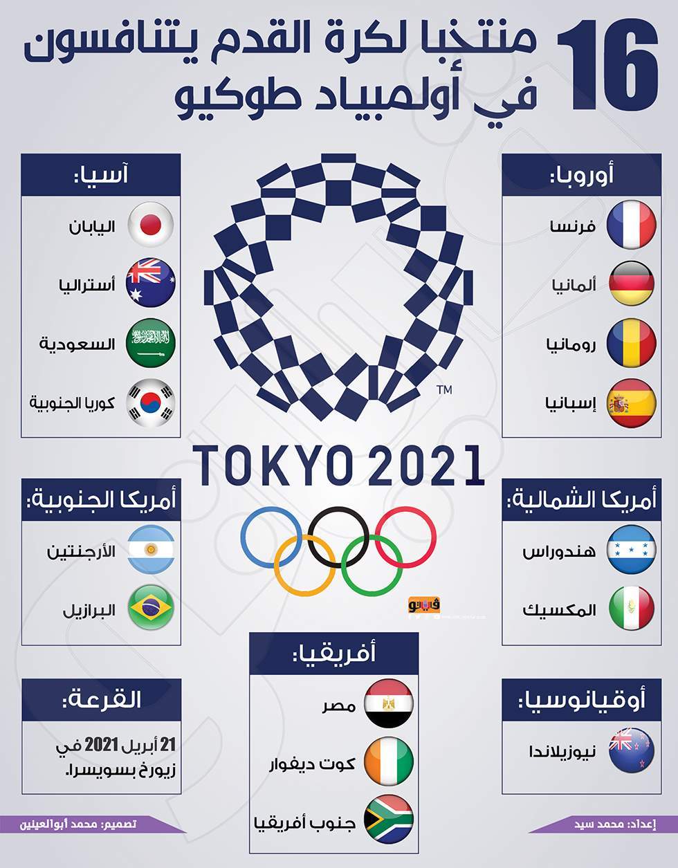 16 منتخبا لكرة القدم يتنافسون في أولمبياد طوكيو | إنفوجراف