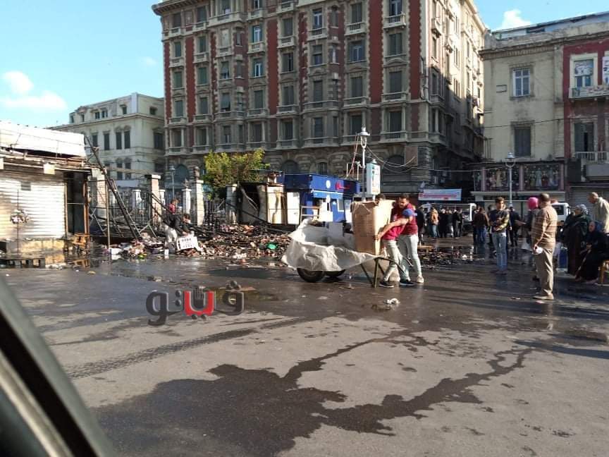 وعقب انتهاء معاينه النيابة والأدلة الجنائية، قام حي الجمرك برفع آثار الحريق وإزالة مخالفته وإخلاء منطقة الحريق من الباعه الجائلين والاشغالات ، وقامت شرطة المرور بتسيير الحركة المرورية وسط المدينة.