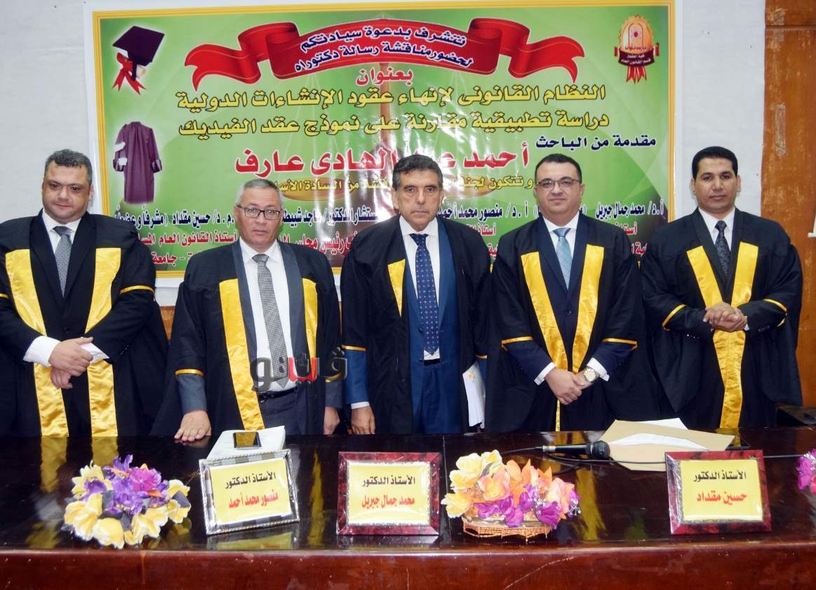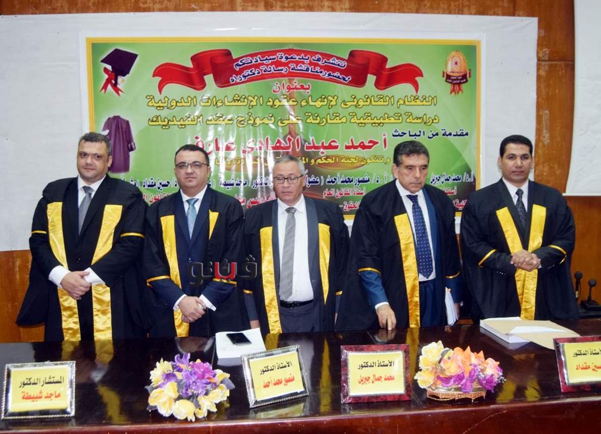 تكونت لجنة الحكم والمناقشة على الرسالة من كل من الدكتور محمد جمال جبريل، أستاذ القانون العام بكلية الحقوق جامعة حلوان مشرفا ورئيساً، الدكتور منصور محمد أحمد، وكيل كلية حقوق المنوفية، المستشار الدكتور ماجد شبيطة، نائب رئيس مجلس الدولة، والدكتور حسين مقداد، أستاذ القانون العام كلية الحقوق جامعة حلوان.