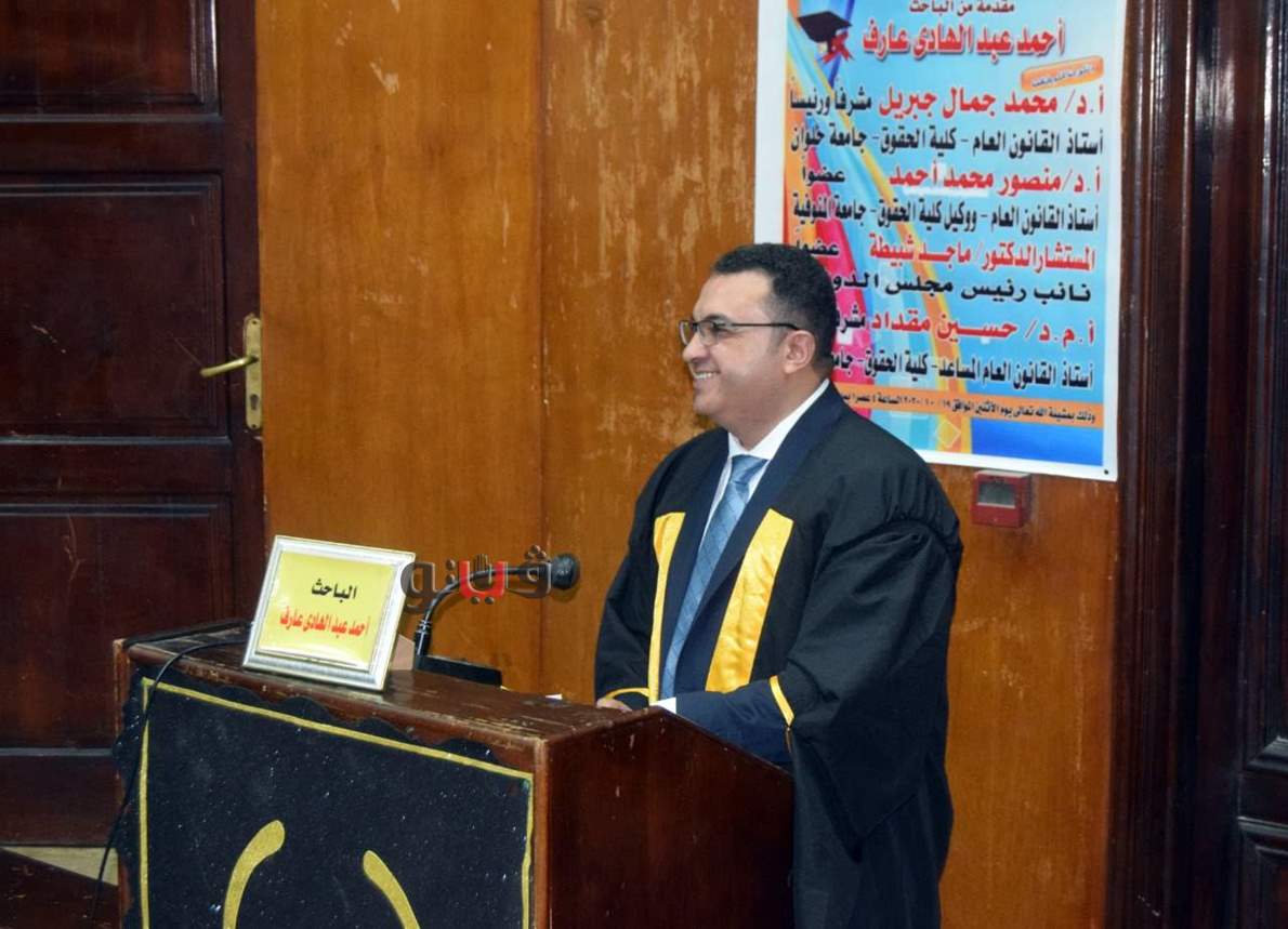 على درجة الدكتوراة فى الحقوق من جامعة حلوان،