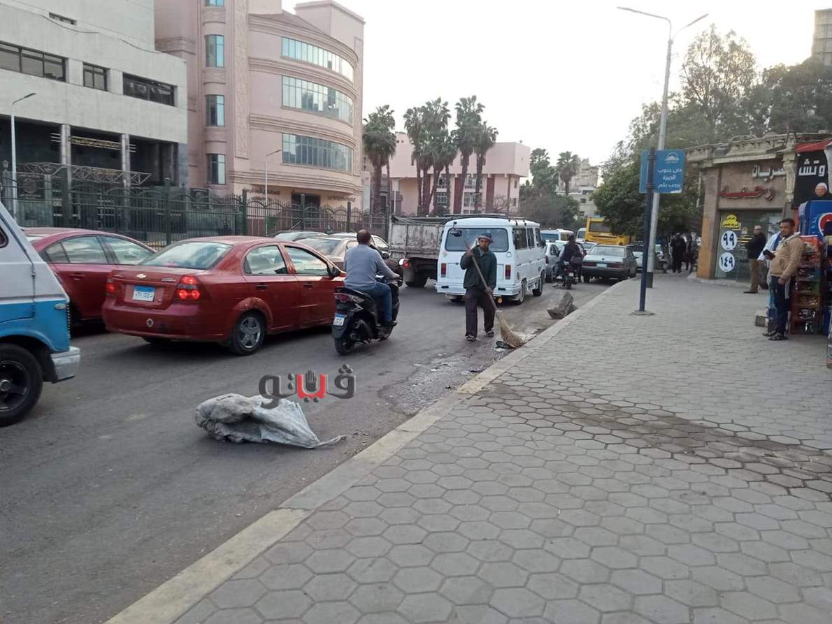 تجريد ورفع أتربة وكنس شارع الأهرام بمحيط كوبرى عباس