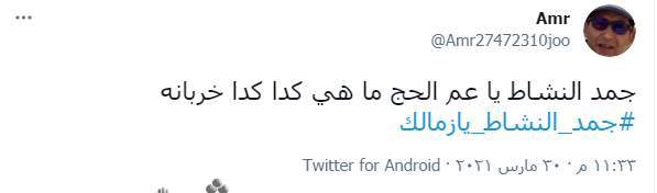 وكتب عمر: «جمد النشاط يا عم الحج ما هي كدا كدا خربانة#جمد_النشاط_يازمالك».